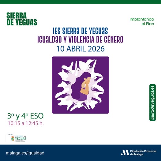 El 10 de abril de 2026, el IES Sierra de Yeguas llevó a cabo una formación especializada bajo el título “Igualdad y prevención de Violencia de Género”, enmarcada dentro del Plan de Igualdad Municipal de Sierra de Yeguas, en su línea de actuación “Implantando el Plan”, y subvencionada por la Diputación de Málaga.